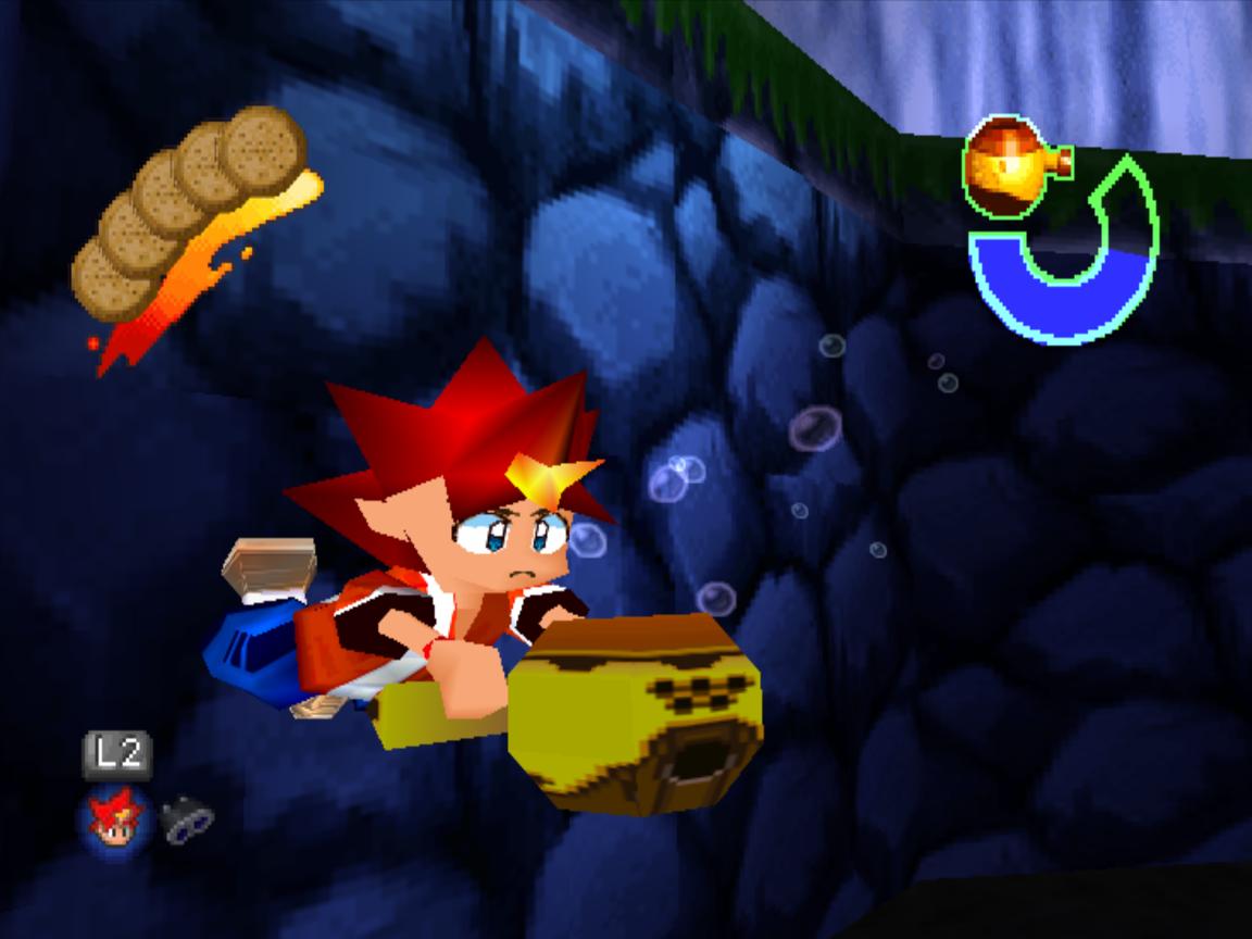 En cuanto a gráficos pues hay que tener en cuenta que realmente este juego es para la Play 1 y no para la 2 que es donde yo lo jugué, con lo que sí, los gráficos no son una maravilla, hay que decirlo. Me recordó un tanto al FFVII pero no es igual, no son grandes escenarios muy bien montados donde ves a tu personaje de lejos, son escenarios 3D donde ya puedes ir a donde quieras. A veces había fallos, y dejaban de verse ciertas partes del escenario, por ejemplo la plataforma de delante o cosas por el estilo, y dificultaba un poco las cosas pero no puedo quejarme demasiado pues en general, los escenarios eran bastante grandes, o tal vez solo lo parecían por las zonas de difícil acceso y el hecho de que pareciera que andas en círculos. De todas formas los escenarios me gustaron bastante, un poco burdos pero bien hechos.